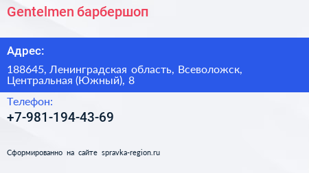 Gentelmen, барбершоп по адресу 188645, Ленинградская область, Всеволожск, Центральная (Южный), 8 в дальнейшем Организация, размещена в следующих категориях: