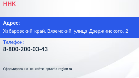 ННК по адресу Хабаровский край, Вяземский, улица Дзержинского, 2 в дальнейшем Организация, размещена в следующих категориях: