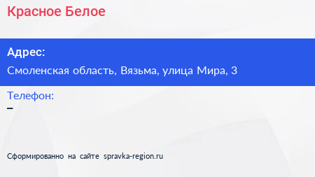 Красное & Белое по адресу Смоленская область, Вязьма, улица Мира, 3 в дальнейшем Организация, размещена в следующих категориях: