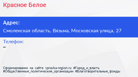 Красное & Белое по адресу Смоленская область, Вязьма, Московская улица, 27 в дальнейшем Организация, размещена в следующих категориях: