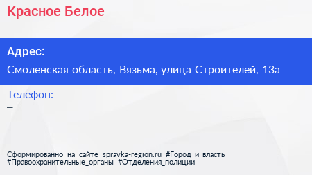 Красное & Белое по адресу Смоленская область, Вязьма, улица Строителей, 13а в дальнейшем Организация, размещена в следующих категориях: