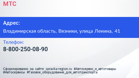 МТС по адресу Владимирская область, Вязники, улица Ленина, 41 в дальнейшем Организация, размещена в следующих категориях: