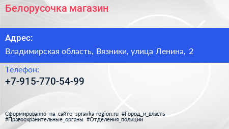 Белорусочка, магазин по адресу Владимирская область, Вязники, улица Ленина, 2 в дальнейшем Организация, размещена в следующих категориях:
