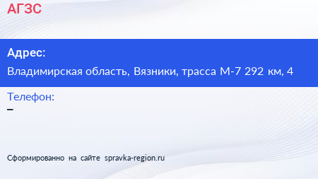 АГЗС по адресу Владимирская область, Вязники, трасса М-7 292 км, 4 в дальнейшем Организация, размещена в следующих категориях: