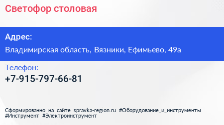 Светофор, столовая по адресу Владимирская область, Вязники, Ефимьево, 49а в дальнейшем Организация, размещена в следующих категориях: