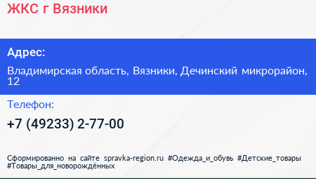 ЖКС, г. Вязники по адресу Владимирская область, Вязники, Дечинский микрорайон, 12 в дальнейшем Организация, размещена в следующих категориях: