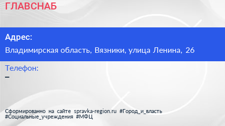 ГЛАВСНАБ по адресу Владимирская область, Вязники, улица Ленина, 26 в дальнейшем Организация, размещена в следующих категориях: