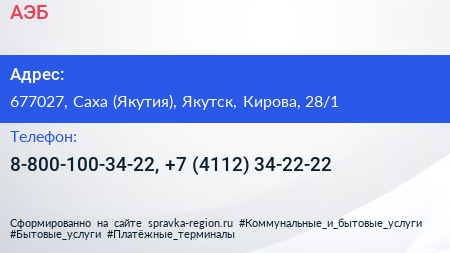 АЭБ по адресу 677027, Саха (Якутия), Якутск, Кирова, 28/1 в дальнейшем Организация, размещена в следующих категориях: