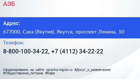 АЭБ по адресу 677000, Саха (Якутия), Якутск, проспект Ленина, 10 в дальнейшем Организация, размещена в следующих категориях: