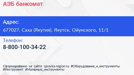АЭБ, банкомат по адресу 677027, Саха (Якутия), Якутск, Ойунского, 11/1 в дальнейшем Организация, размещена в следующих категориях: