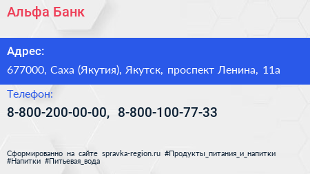 Альфа-Банк по адресу 677000, Саха (Якутия), Якутск, проспект Ленина, 11а в дальнейшем Организация, размещена в следующих категориях: