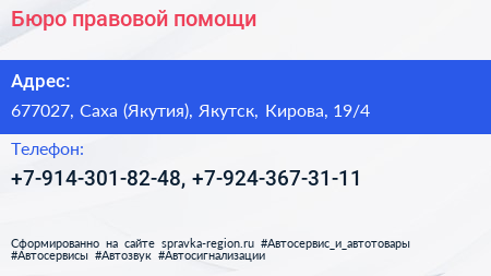 Бюро правовой помощи по адресу 677027, Саха (Якутия), Якутск, Кирова, 19/4 в дальнейшем Организация, размещена в следующих категориях: