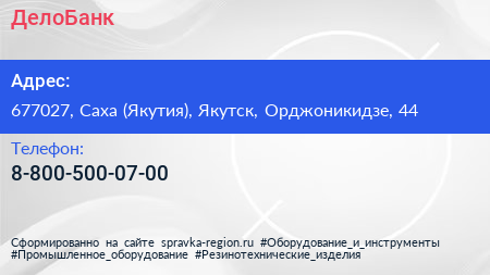 ДелоБанк по адресу 677027, Саха (Якутия), Якутск, Орджоникидзе, 44 в дальнейшем Организация, размещена в следующих категориях: