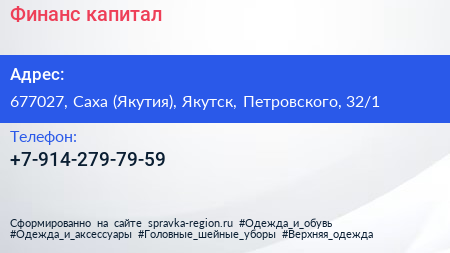 Финанс капитал по адресу 677027, Саха (Якутия), Якутск, Петровского, 32/1 в дальнейшем Организация, размещена в следующих категориях: