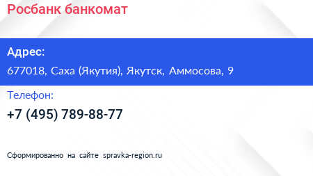 Росбанк, банкомат по адресу 677018, Саха (Якутия), Якутск, Аммосова, 9 в дальнейшем Организация, размещена в следующих категориях: