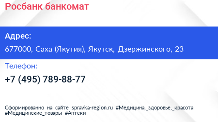 Росбанк, банкомат по адресу 677000, Саха (Якутия), Якутск, Дзержинского, 23 в дальнейшем Организация, размещена в следующих категориях: