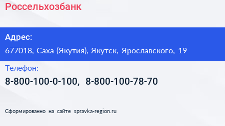 Россельхозбанк по адресу 677018, Саха (Якутия), Якутск, Ярославского, 19 в дальнейшем Организация, размещена в следующих категориях: