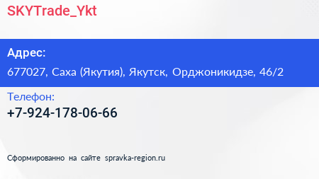 SKYTrade_Ykt по адресу 677027, Саха (Якутия), Якутск, Орджоникидзе, 46/2 в дальнейшем Организация, размещена в следующих категориях: