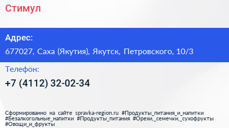 Стимул по адресу 677027, Саха (Якутия), Якутск, Петровского, 10/3 в дальнейшем Организация, размещена в следующих категориях: