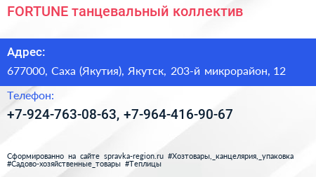FORTUNE, танцевальный коллектив по адресу 677000, Саха (Якутия), Якутск, 203-й микрорайон, 12 в дальнейшем Организация, размещена в следующих категориях: