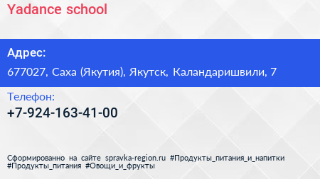 Yadance school по адресу 677027, Саха (Якутия), Якутск, Каландаришвили, 7 в дальнейшем Организация, размещена в следующих категориях: