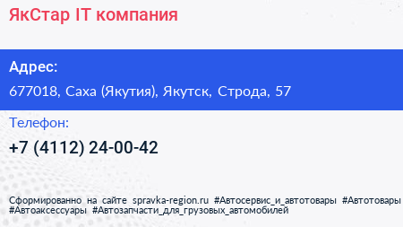 ЯкСтар, IT-компания по адресу 677018, Саха (Якутия), Якутск, Строда, 57 в дальнейшем Организация, размещена в следующих категориях: