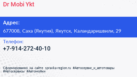 Dr.Mobi.Ykt по адресу 677008, Саха (Якутия), Якутск, Каландаришвили, 29 в дальнейшем Организация, размещена в следующих категориях:
