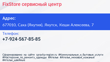 FixStore, сервисный центр по адресу 677010, Саха (Якутия), Якутск, Кеши Алексеева, 7 в дальнейшем Организация, размещена в следующих категориях: