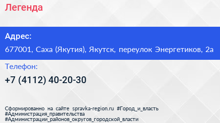 Легенда по адресу 677001, Саха (Якутия), Якутск, переулок Энергетиков, 2а в дальнейшем Организация, размещена в следующих категориях: