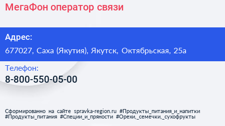МегаФон, оператор связи по адресу 677027, Саха (Якутия), Якутск, Октябрьская, 25а в дальнейшем Организация, размещена в следующих категориях: