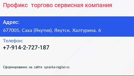 Профикс+, торгово-сервисная компания по адресу 677005, Саха (Якутия), Якутск, Халтурина, 6 в дальнейшем Организация, размещена в следующих категориях: