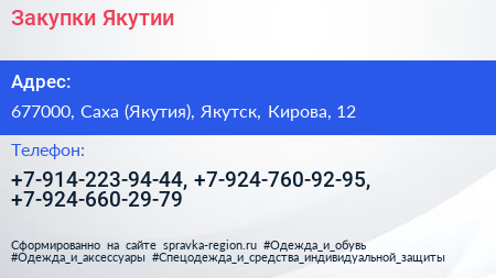 Закупки Якутии по адресу 677000, Саха (Якутия), Якутск, Кирова, 12 в дальнейшем Организация, размещена в следующих категориях: