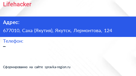 Lifehacker по адресу 677010, Саха (Якутия), Якутск, Лермонтова, 124 в дальнейшем Организация, размещена в следующих категориях: