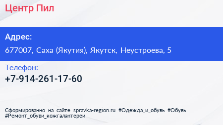 Центр-Пил по адресу 677007, Саха (Якутия), Якутск, Неустроева, 5 в дальнейшем Организация, размещена в следующих категориях: