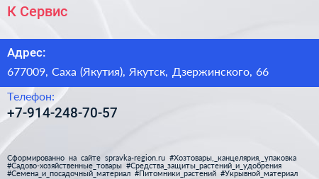 К-Сервис по адресу 677009, Саха (Якутия), Якутск, Дзержинского, 66 в дальнейшем Организация, размещена в следующих категориях: