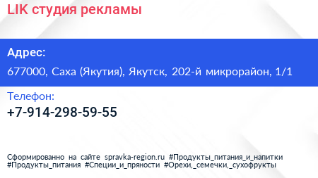 LIK, студия рекламы по адресу 677000, Саха (Якутия), Якутск, 202-й микрорайон, 1/1 в дальнейшем Организация, размещена в следующих категориях: