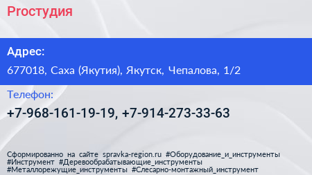 Proстудия по адресу 677018, Саха (Якутия), Якутск, Чепалова, 1/2 в дальнейшем Организация, размещена в следующих категориях: