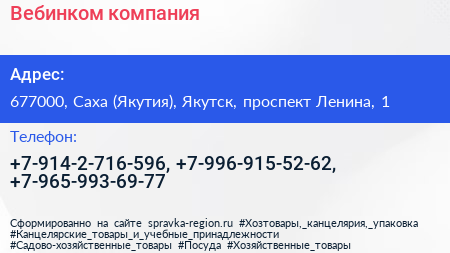 Вебинком, компания по адресу 677000, Саха (Якутия), Якутск, проспект Ленина, 1 в дальнейшем Организация, размещена в следующих категориях: