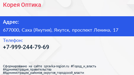 Корея Оптика по адресу 677000, Саха (Якутия), Якутск, проспект Ленина, 17 в дальнейшем Организация, размещена в следующих категориях: