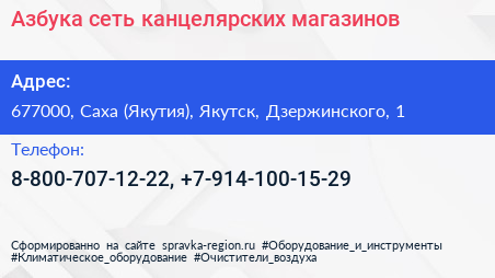 Азбука, сеть канцелярских магазинов по адресу 677000, Саха (Якутия), Якутск, Дзержинского, 1 в дальнейшем Организация, размещена в следующих категориях: