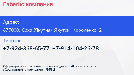 Faberlic, компания по адресу 677000, Саха (Якутия), Якутск, Короленко, 2 в дальнейшем Организация, размещена в следующих категориях: