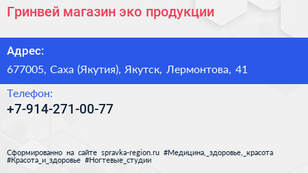 Гринвей, магазин эко-продукции по адресу 677005, Саха (Якутия), Якутск, Лермонтова, 41 в дальнейшем Организация, размещена в следующих категориях: