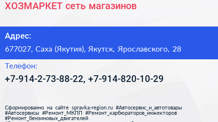ХОЗМАРКЕТ, сеть магазинов по адресу 677027, Саха (Якутия), Якутск, Ярославского, 28 в дальнейшем Организация, размещена в следующих категориях: