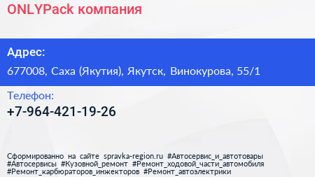 ONLYPack, компания по адресу 677008, Саха (Якутия), Якутск, Винокурова, 55/1 в дальнейшем Организация, размещена в следующих категориях: