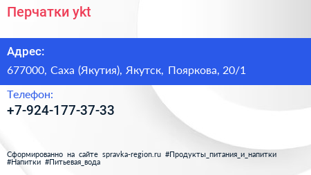 Перчатки ykt по адресу 677000, Саха (Якутия), Якутск, Пояркова, 20/1 в дальнейшем Организация, размещена в следующих категориях: