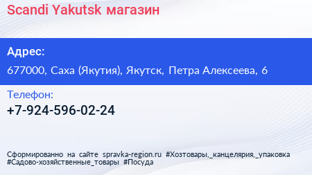 Scandi Yakutsk, магазин по адресу 677000, Саха (Якутия), Якутск, Петра Алексеева, 6 в дальнейшем Организация, размещена в следующих категориях: