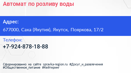 Автомат по розливу воды по адресу 677000, Саха (Якутия), Якутск, Пояркова, 17/2 в дальнейшем Организация, размещена в следующих категориях: