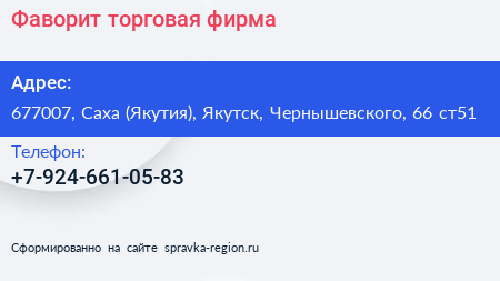 Фаворит, торговая фирма по адресу 677007, Саха (Якутия), Якутск, Чернышевского, 66 ст51 в дальнейшем Организация, размещена в следующих категориях: