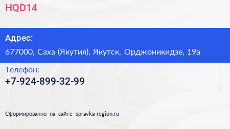 HQD14 по адресу 677000, Саха (Якутия), Якутск, Орджоникидзе, 19а в дальнейшем Организация, размещена в следующих категориях: