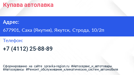 Купава, автолавка по адресу 677901, Саха (Якутия), Якутск, Строда, 10/2п в дальнейшем Организация, размещена в следующих категориях: